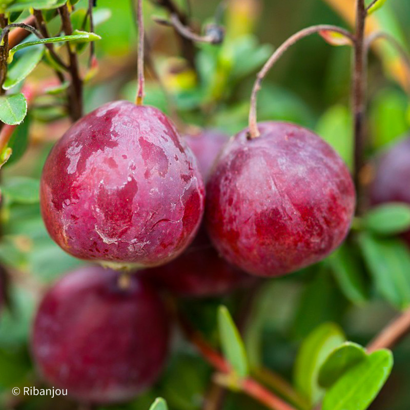 C'est un couvre-sol de terre acide et humide, on trouve l'espèce à l'état naturel dans les tourbières où elle pousse en plein soleil les pieds dans l'eau. La floraison rose pâle est en forme de bec de grue d'où son nom "cranberry". Il est important d'associer au moins 2 variétés pour une bonne pollinisation. Les petites feuilles persistantes sont vers luisant en saison et prennent une coloration rouge sombre en hiver.